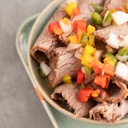 Lagarto ao Molho de Vinagrete: lagarto fatiado fininho e bem temperado com um molho de vinagrete.